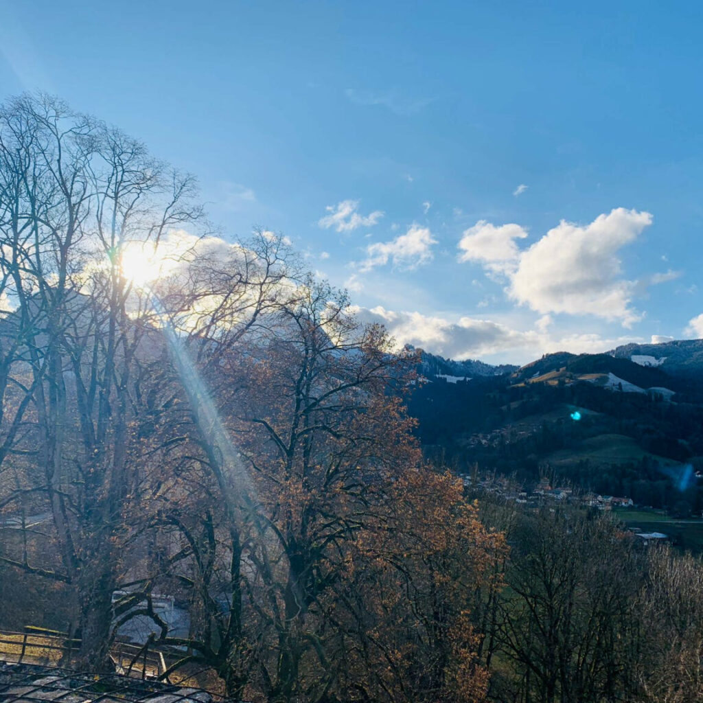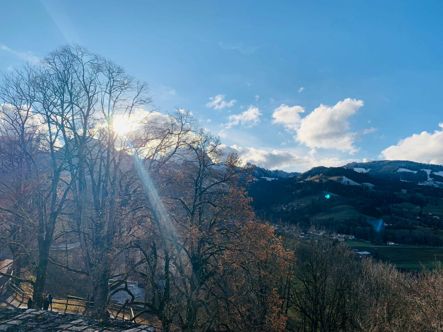 Paisagem em frente a entrada do Castelo de Gruyères