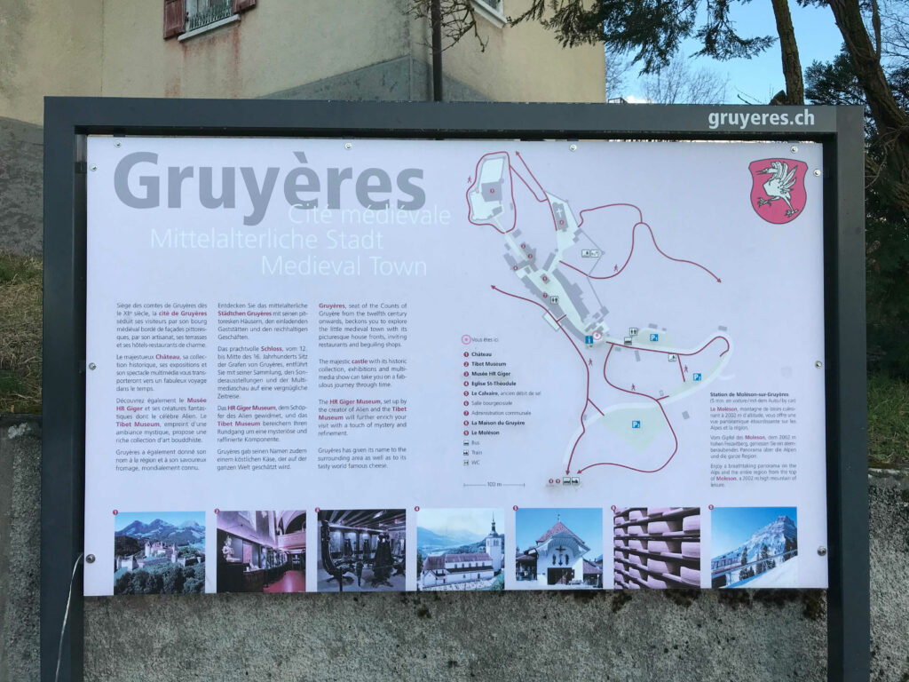 Outra dica é pensar em todas as atividades e os pontos que quer visitar na cidade. Embora a vila seja pequena, é preciso considerar que é necessário tempo para as atrações. Eu deixaria 1,5 a 2h para visitar o Castelo de Gruyères (apreciar a paisagem e os jardins).