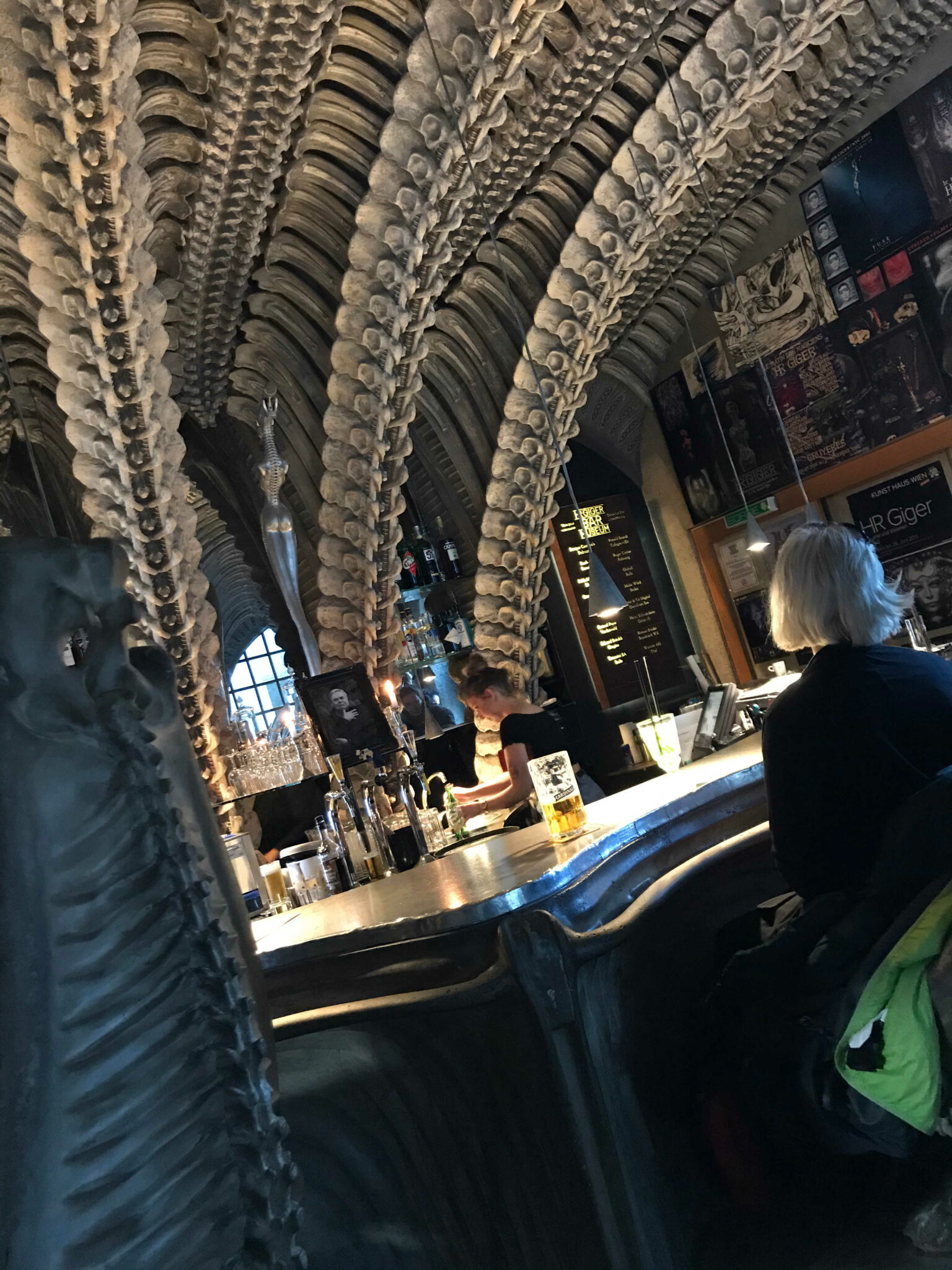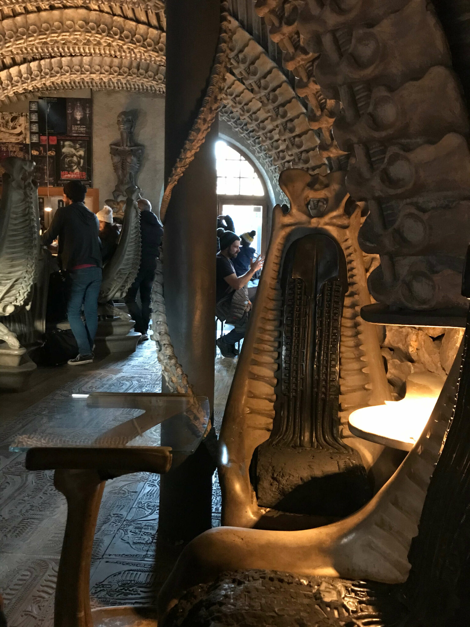 Após uma volta pela parte externa do Castelo, seguimos de volta para o centro histórico e passamos em frente ao Museu HR Giger. Esse museu também está localizado dentro de um castelo menor e é dedicado às obras de arte do suíço Hans Ruedi Gider, famoso pelo trabalho no filme Alien. De um lado da rua está o museu e, do outro, um o HR Ginger Bar, ou também “Bar do Alien”.
