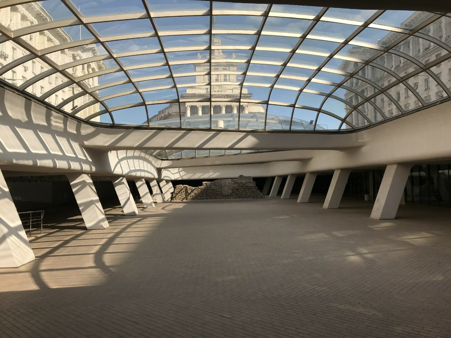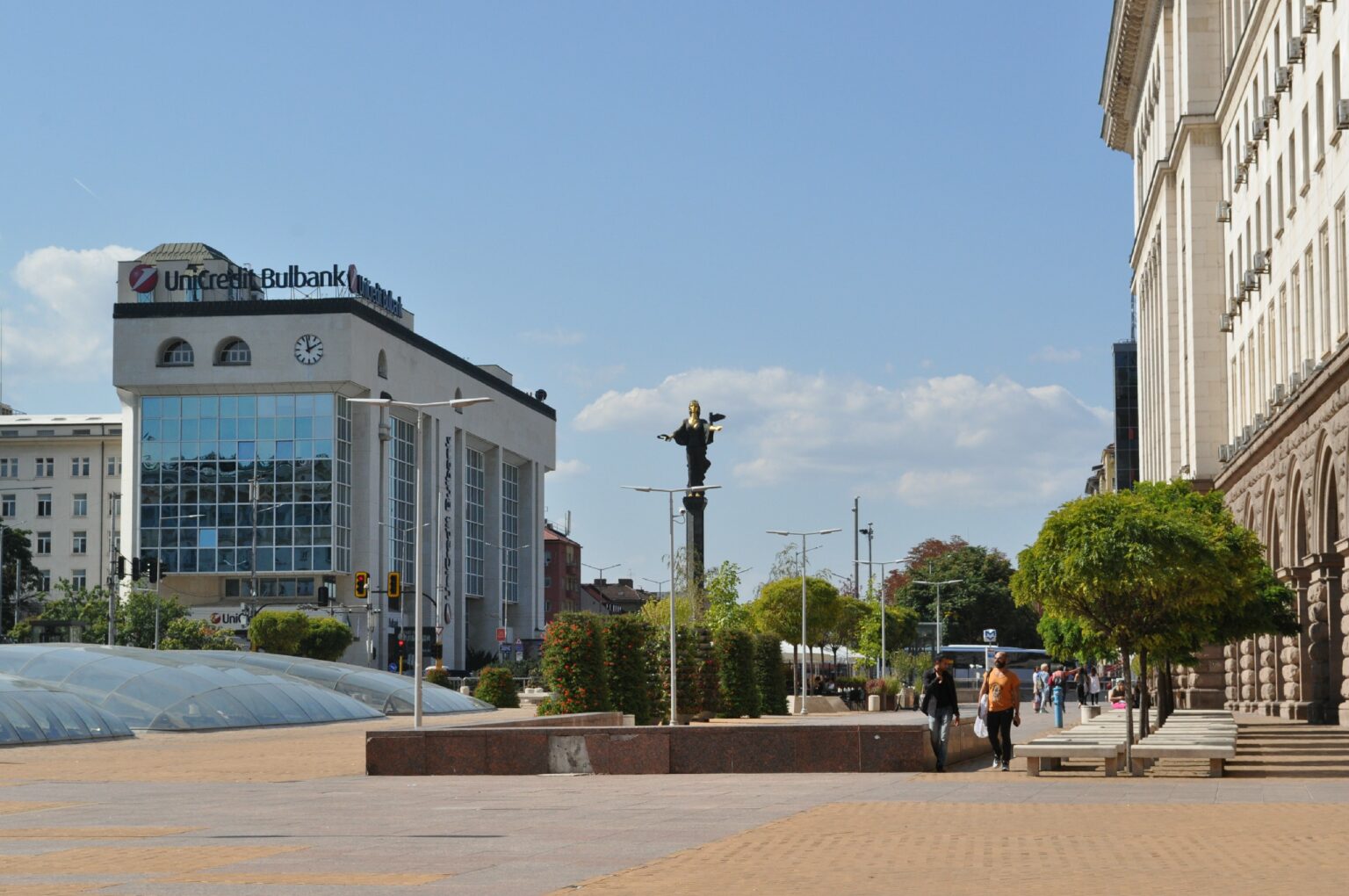 Na parte abaixo do largo estão sendo feitas obras de restauração. Alí estão as ruínas de uma antiga cidade chamada Serdica. As Ruínas foram descobertas durante uma escavação para expansão do metrô. Grande parte já está visível através de uma cobertura de vidro o nível da rua, mas ainda havia pontos em obras. Todo o complexo arquitetônico se estende da sede do governo até a área do metrô.