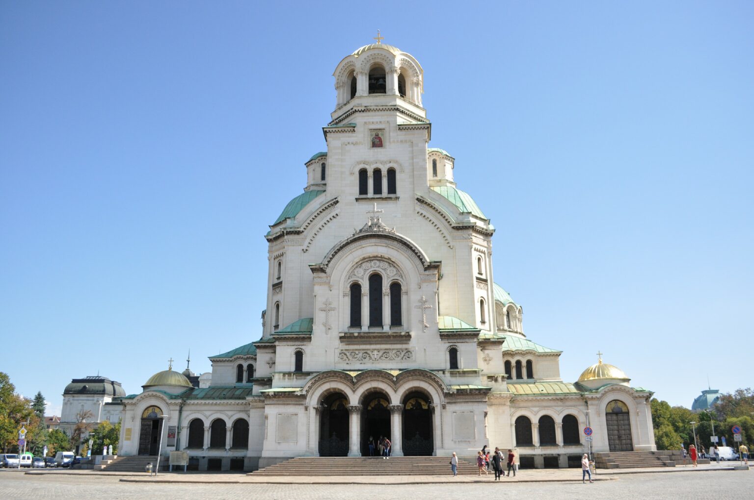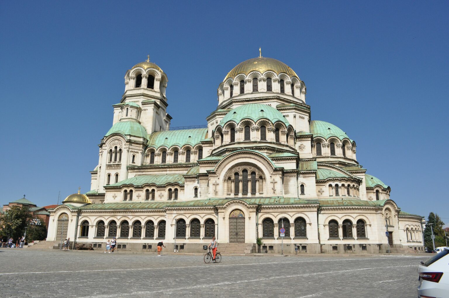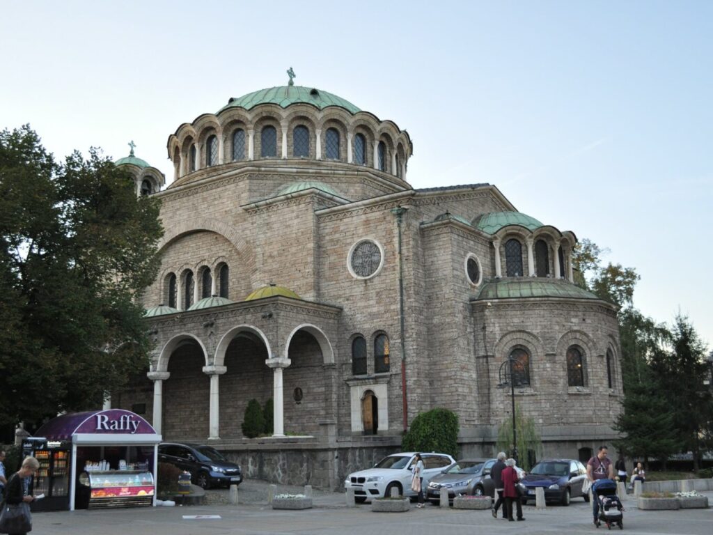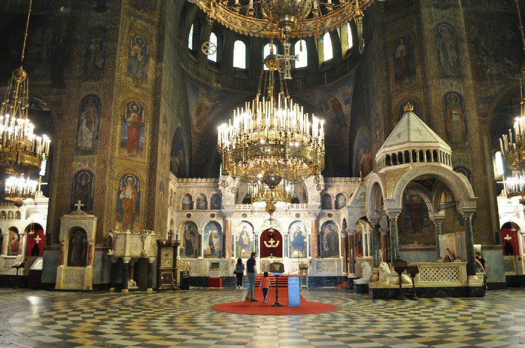 De lá seguimos para conhecer a Catedral de St. Alexander Nevsky, uma catedral ortodoxa búlgara, construída em estilo neo-bizantino. É uma das maiores catedrais ortodoxas orientais do mundo, e também um cartão postal da cidade. Seu domo dourado destaca-se e o interior é escuro, com pinturas por toda a parte. A entrada na Catedral é gratuita, mas para tirar fotos é necessário pagar uma taxa.