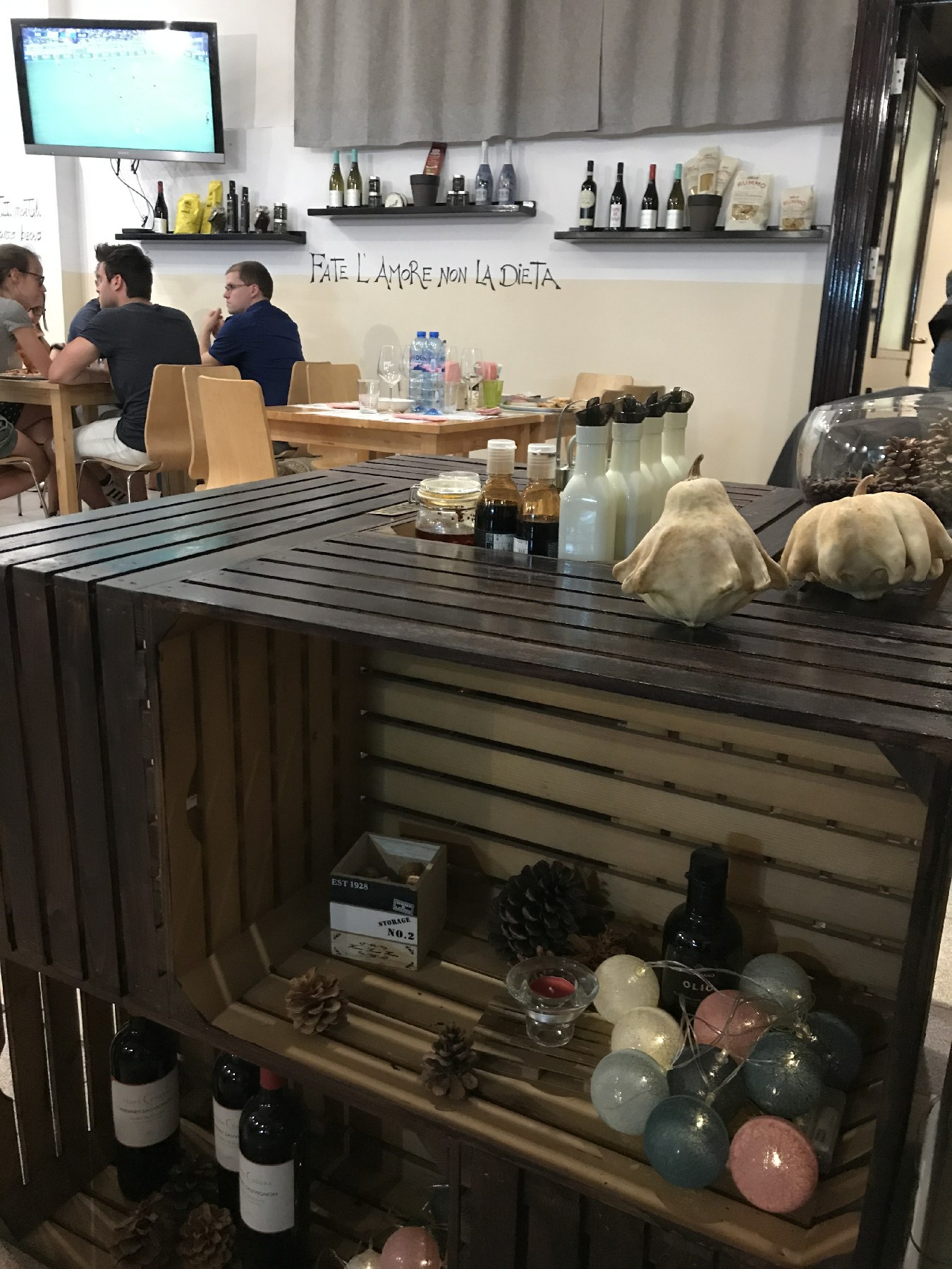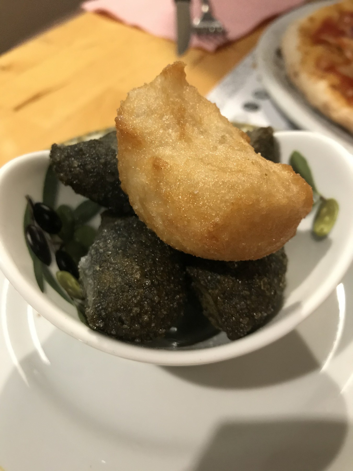 O dia já estava terminando e encontramos um restaurante ali por perto, a Olio D’Oliva. Um restaurante italiano pequeno, aconchegante e com uma ótima variedade de pratos. O dono foi super simpático e atencioso. Como acompanhamento é servido uma massa de pizza frita e temperada muito saborosa. Também achei interessante a a forma como a conta é entregue aos clientes: dentro de uma caixinha de madeira.