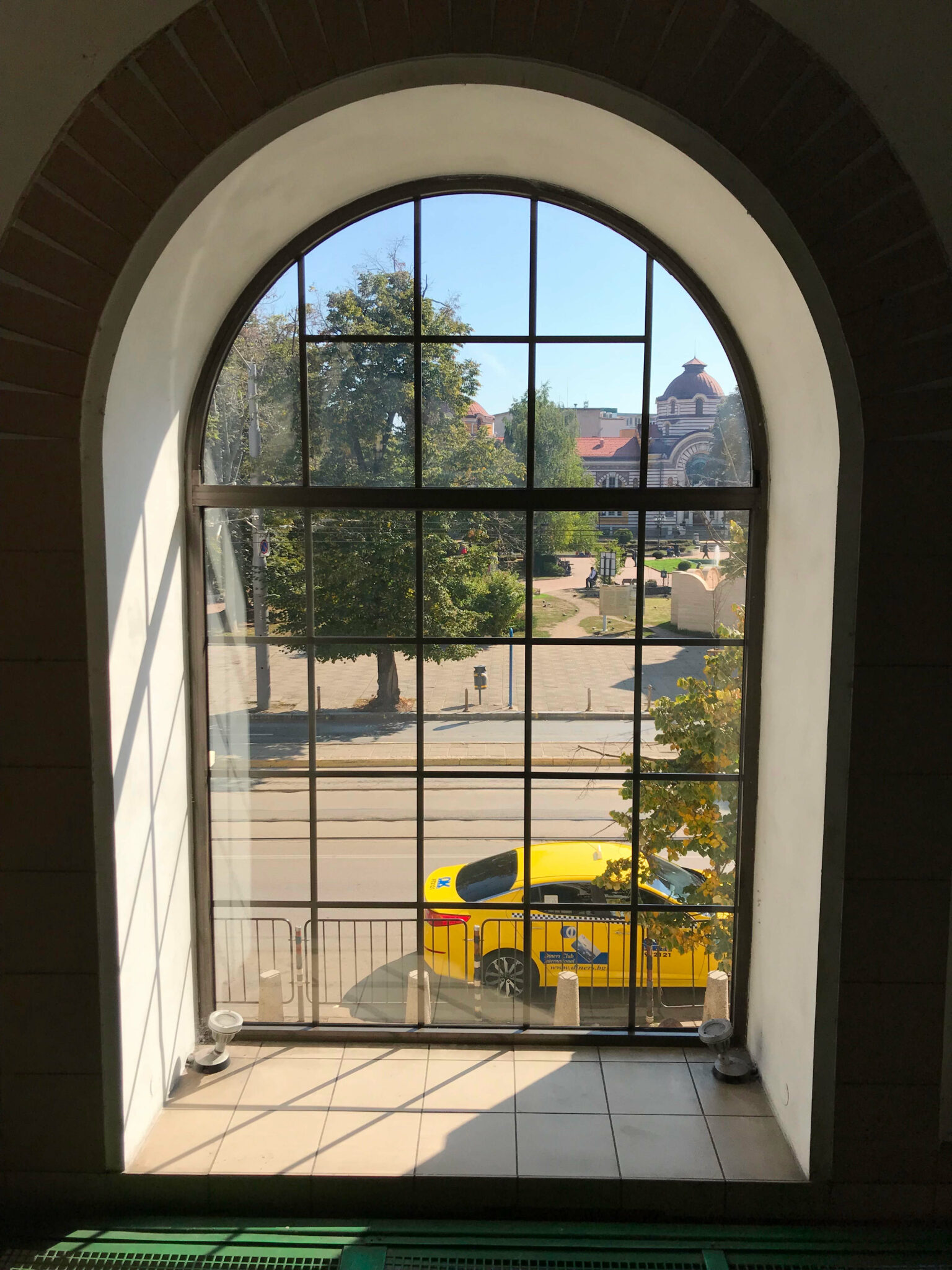 O hotel não ficava muito longe da parte central de Sofia, onde estão localizados a maior parte dos prédios históricos. São edifícios em arquitetura neoclássica. Muitas ruas da cidade são feitas com tijolos amarelos e a cidade é muito colorida.