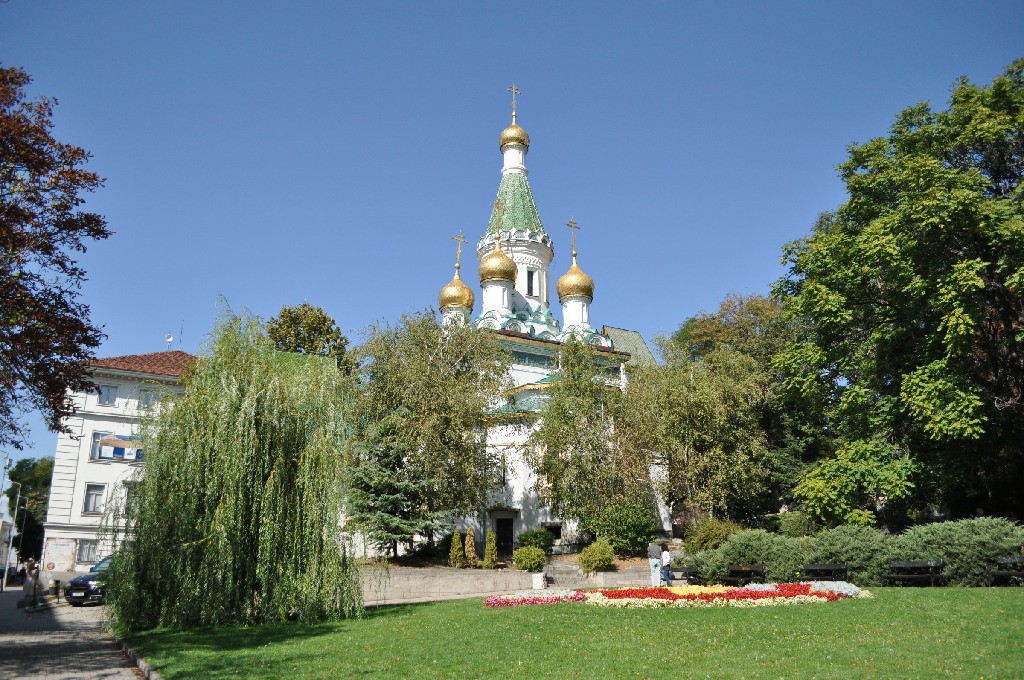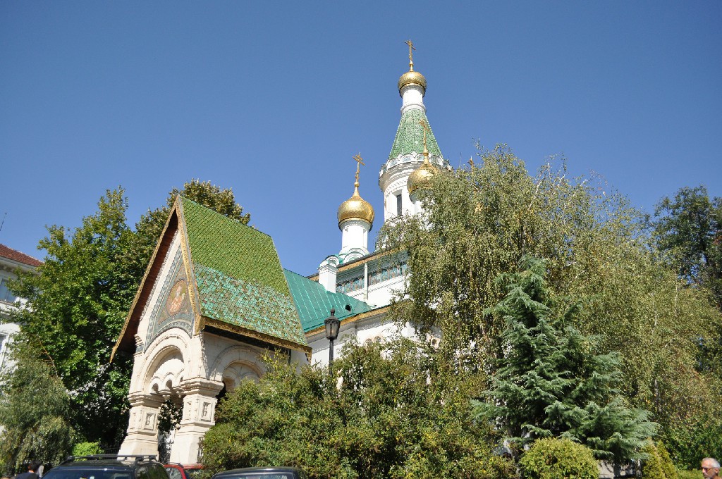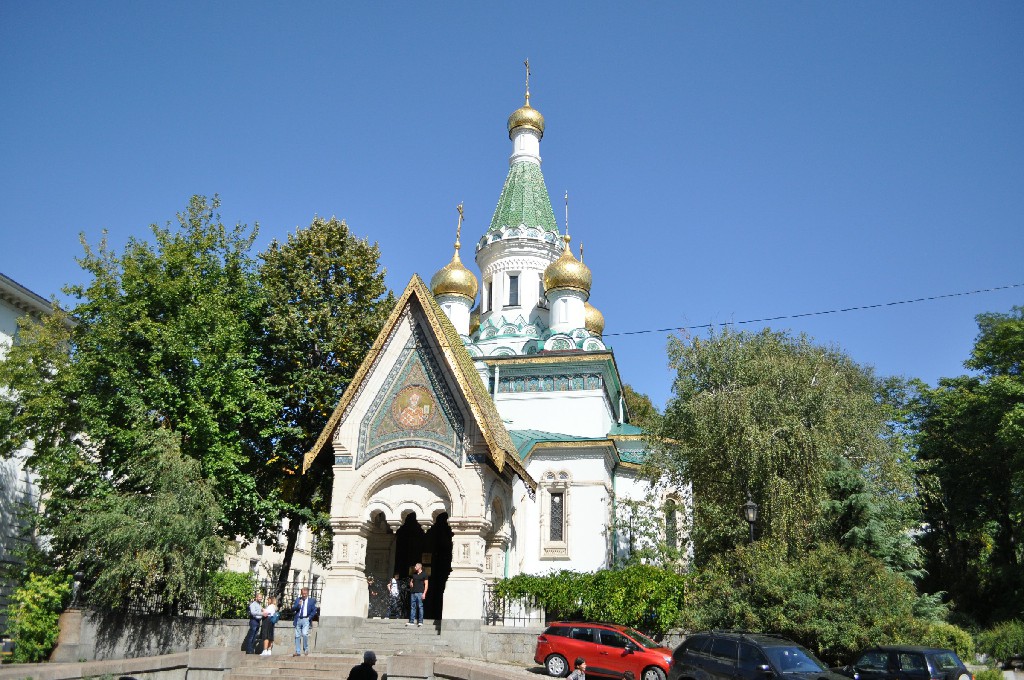 Passamos em frente a Sveta Nicolai, ou Igreja Ortodoxa Russa de São Nicolau, uma construção que se destaca na paisagem. Foi construída entre 1907 e 1914 com o propósito de servir como capela da embaixada russa na Bulgária. A entrada é repleta de degraus, e ficamos pouco tempo no interior pois iria começar uma missa (e não pudermos fotografar).