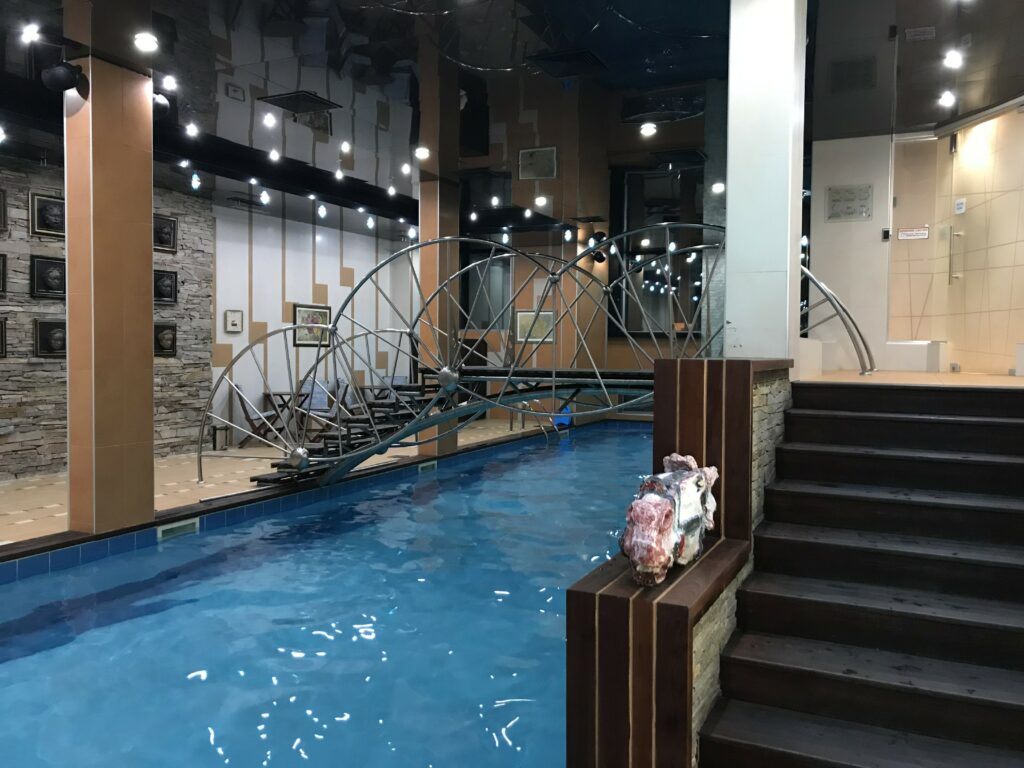 Voltamos para o hotel a tempo de nos refrescarmos na piscina. Curiosamente quando fizemos a reserva recebemos uma mensagem informando sobre a piscina (aquecida) e as exigências para entrar: uso de toucas. Fomos preparados e conseguimos desfrutar alguns minutinhos na água (que ao meu ver não era tão aquecida assim!).